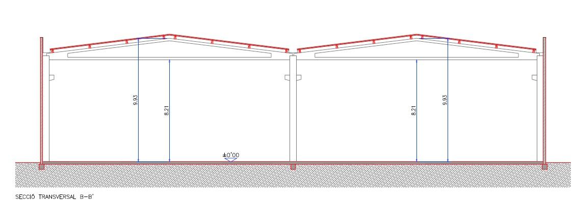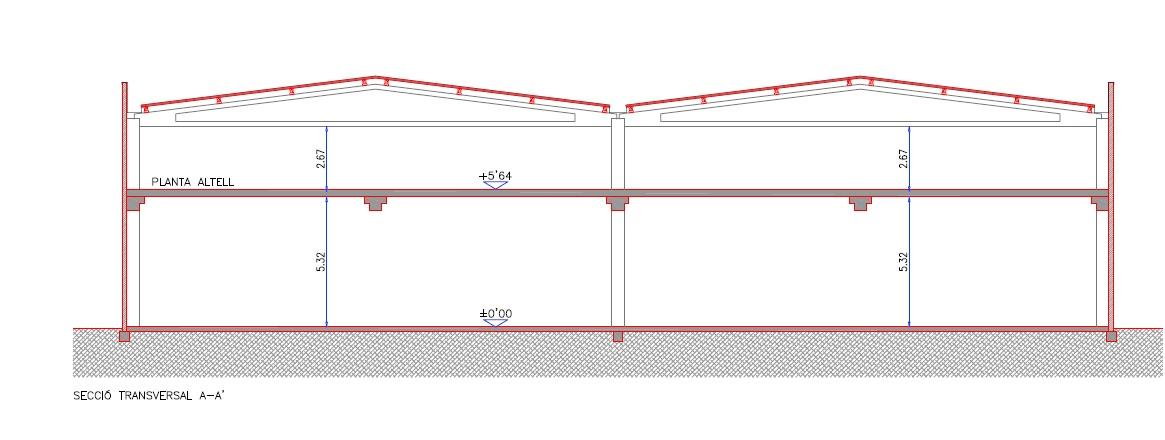 Planta baixa de 2.000m2 (40m amplada) i altell de 450m2