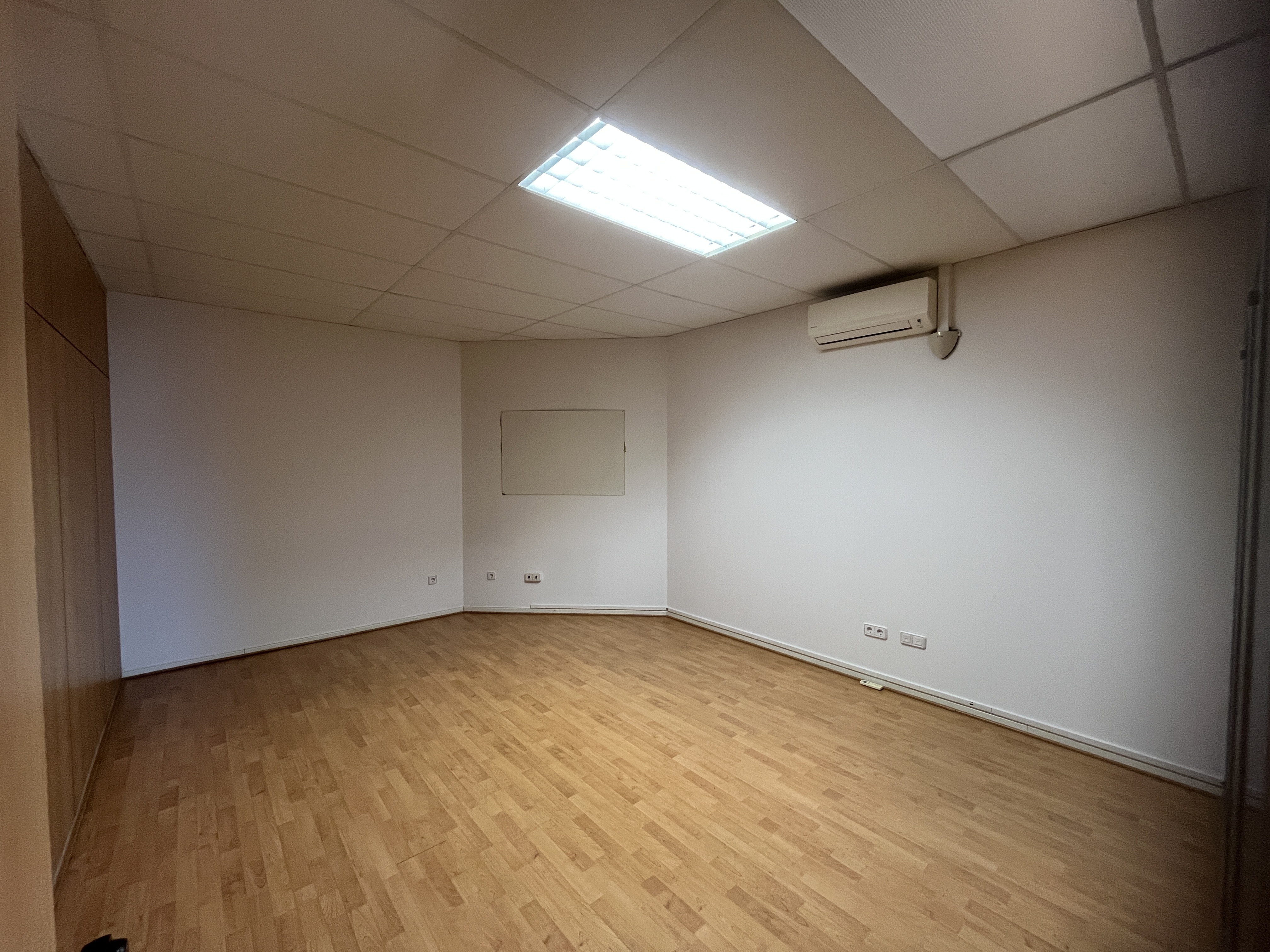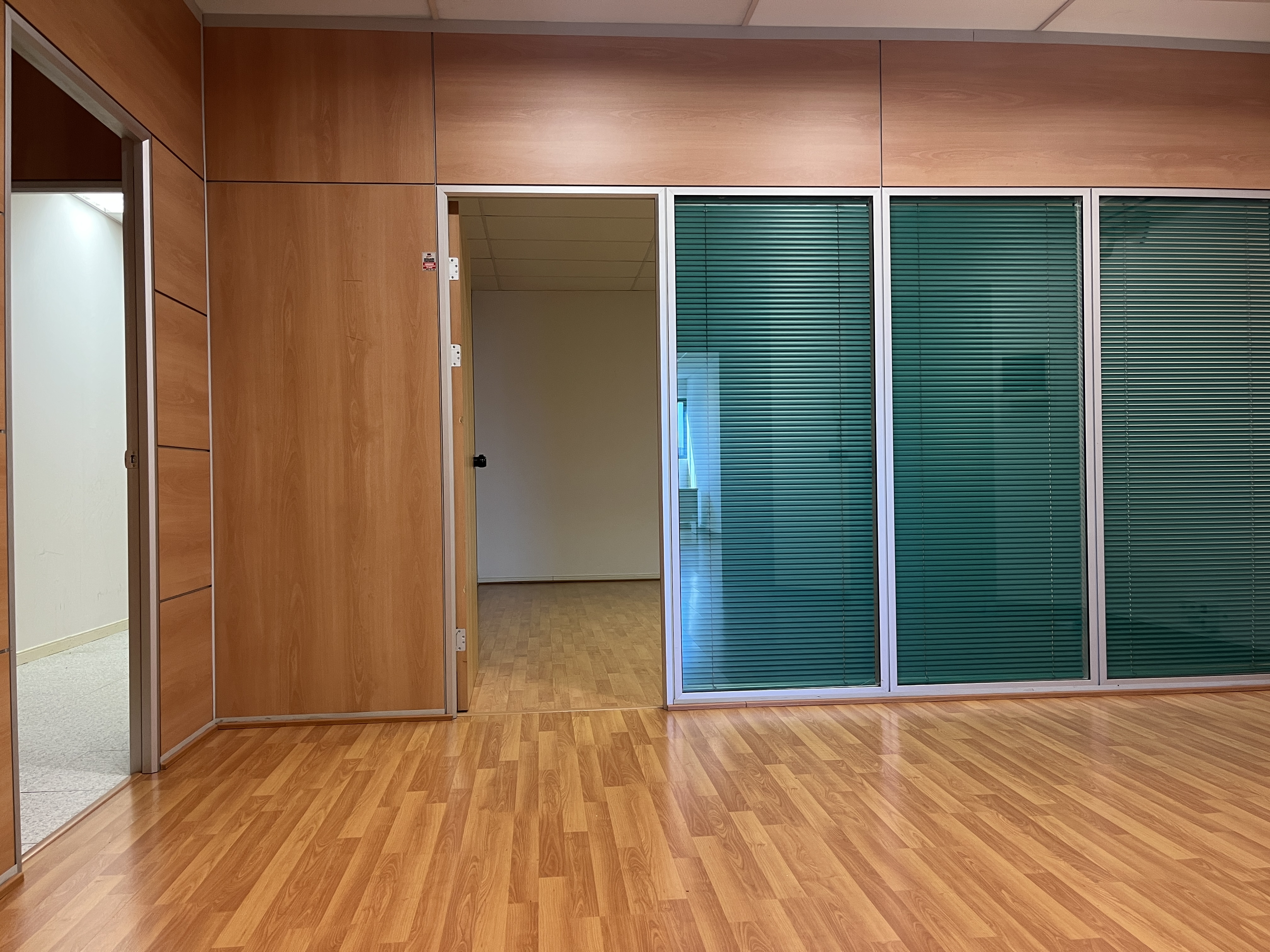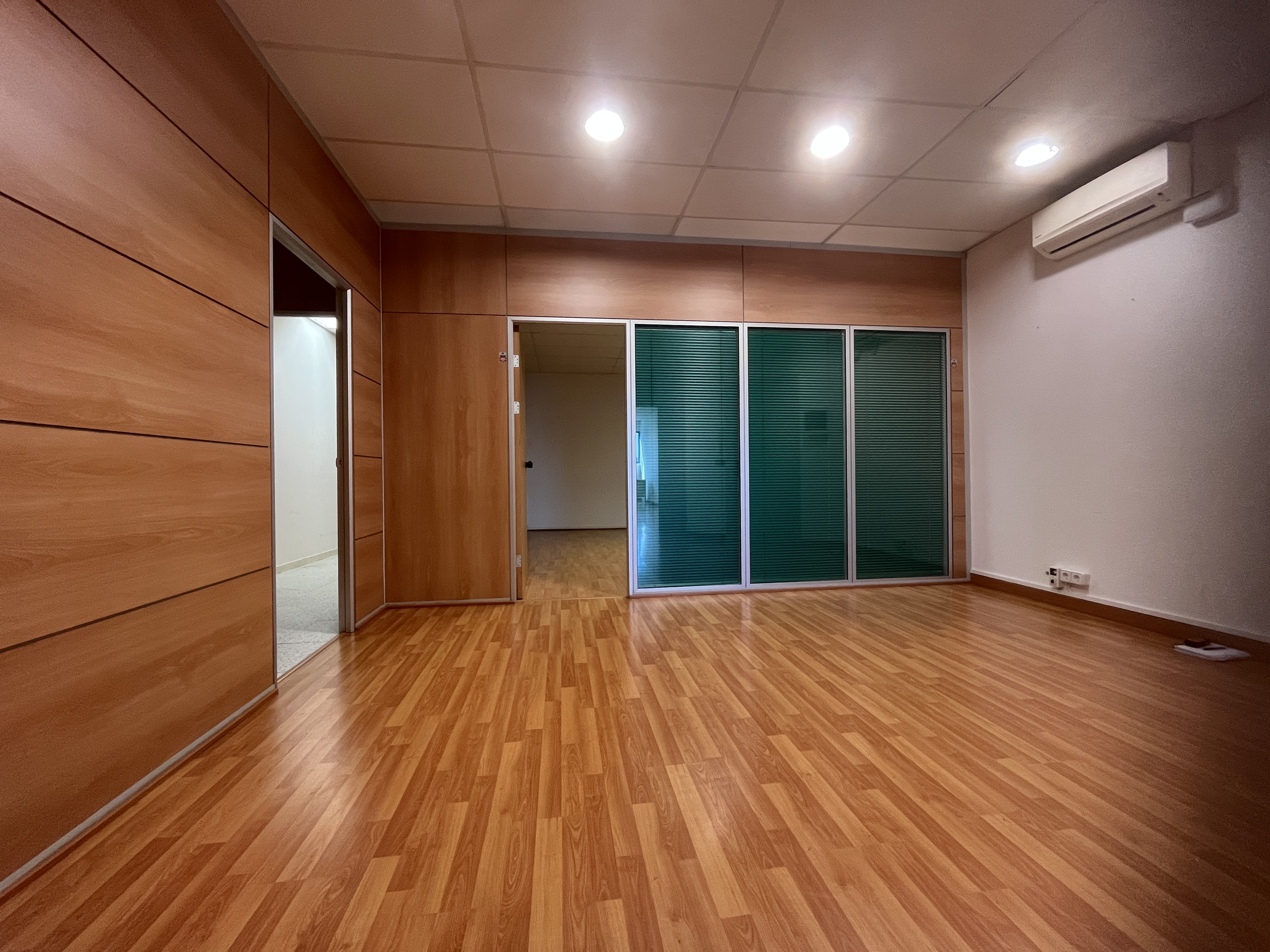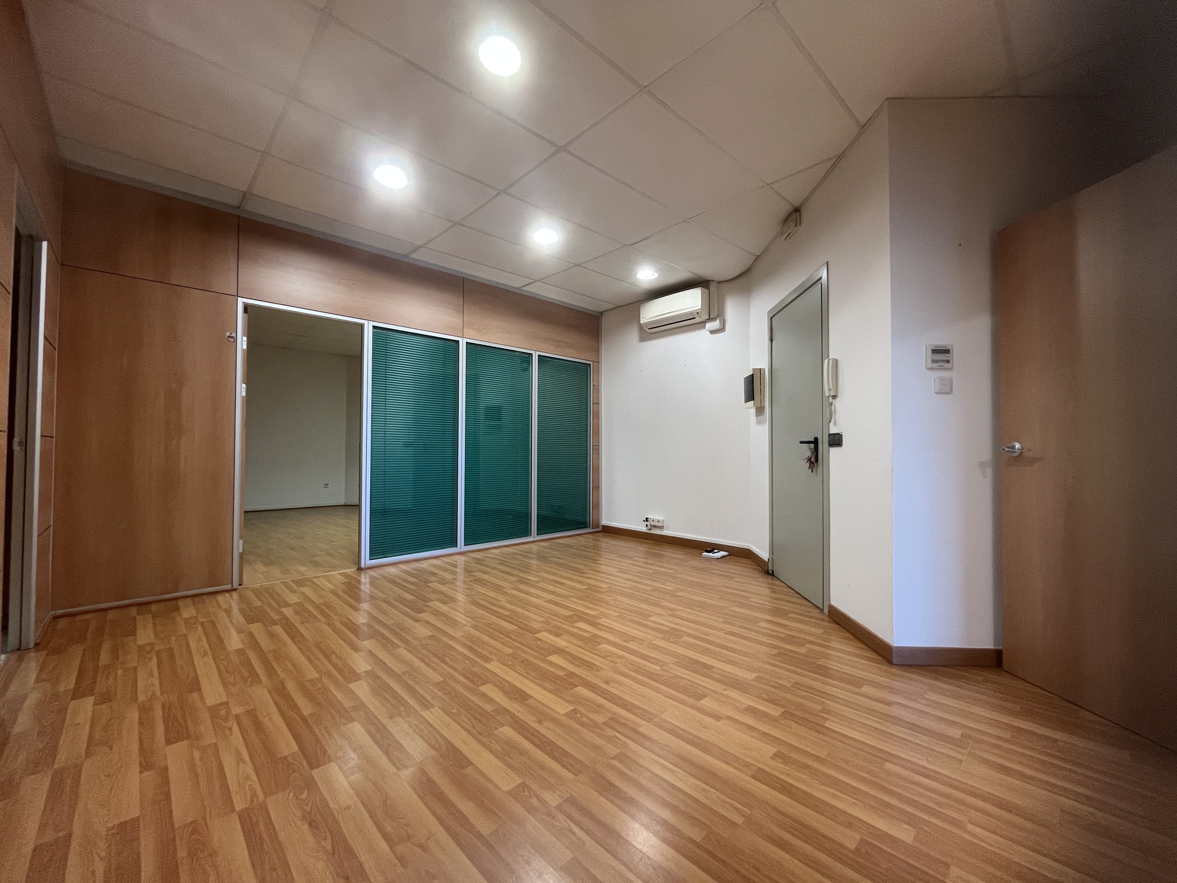 Oficina de 125m2 format per recepció amb varis departaments i lavabo.