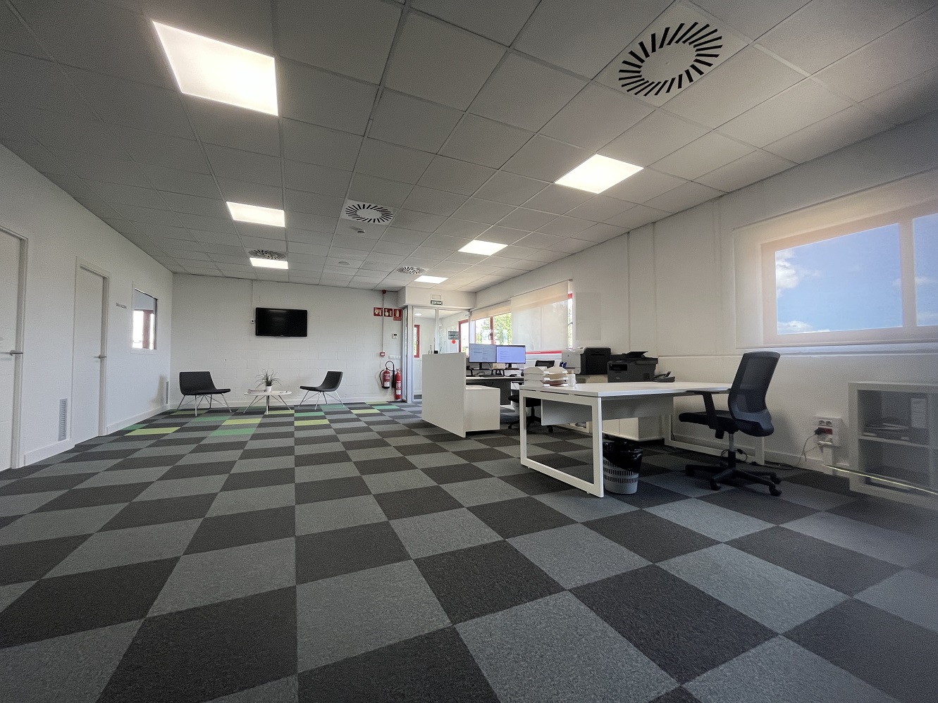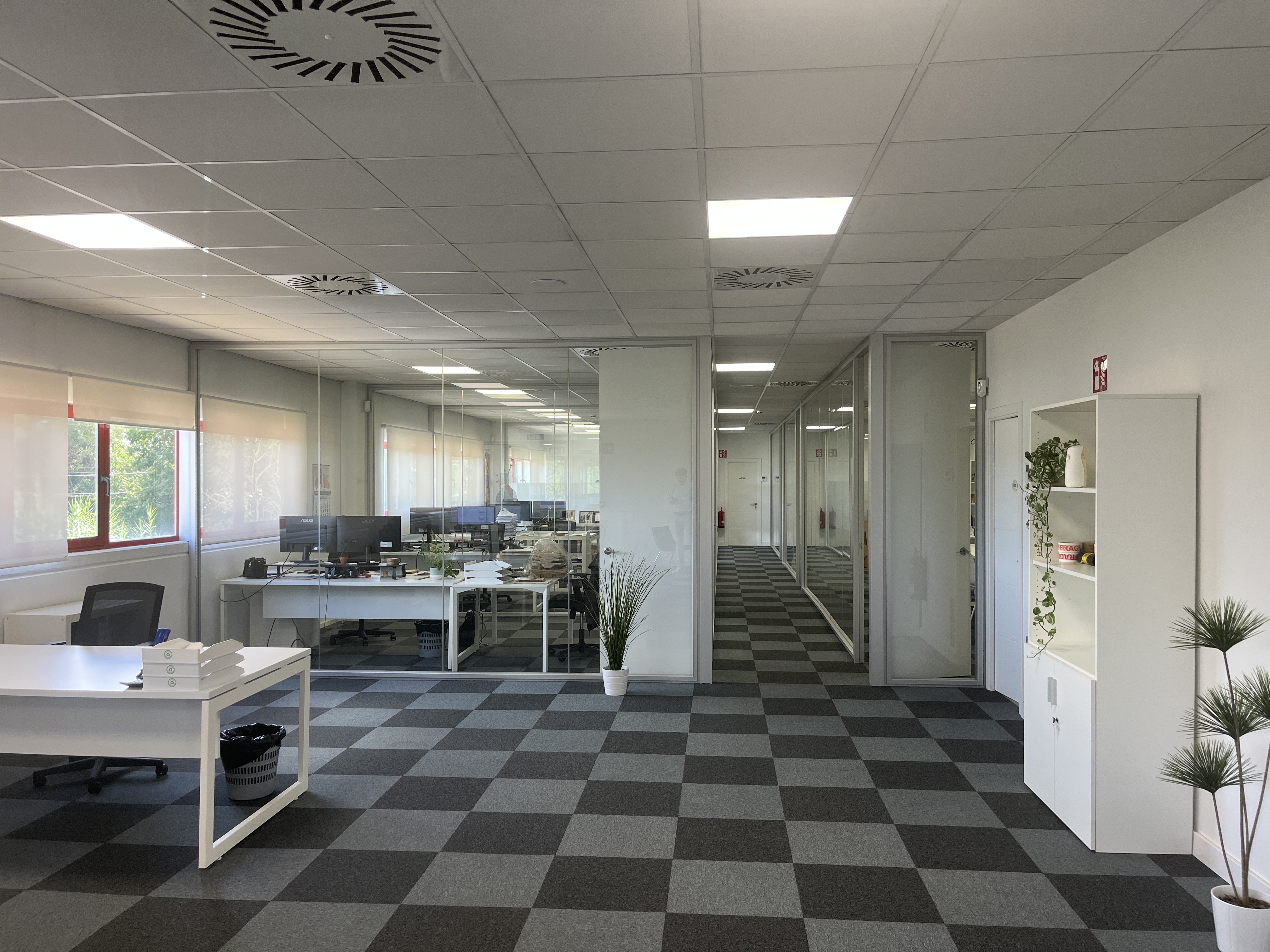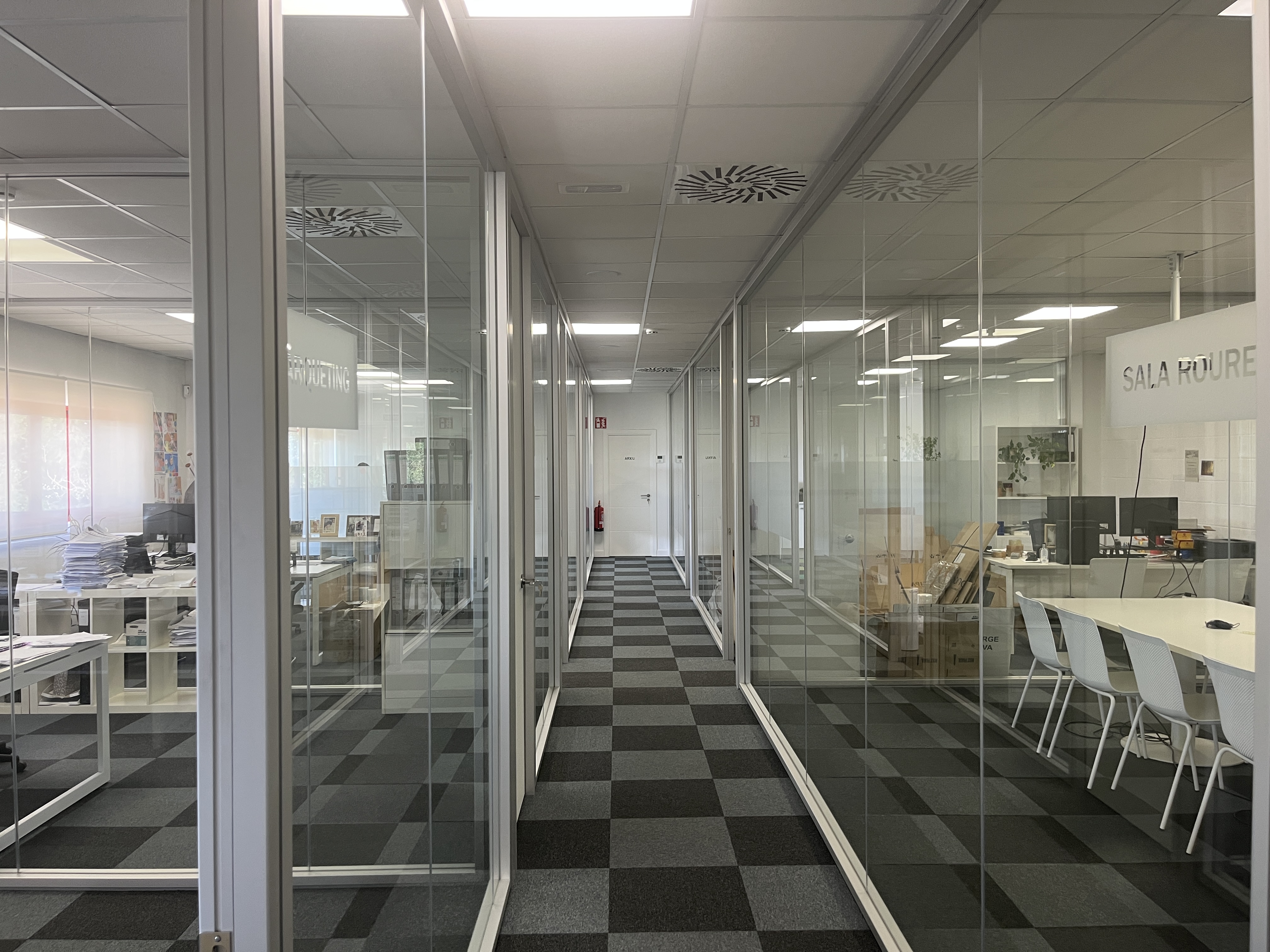 altell equipada amb oficines amb climatització, mampares de vidre, lavabos, xarxa distribuïda, accés d’escala metàl. lica, etc.
