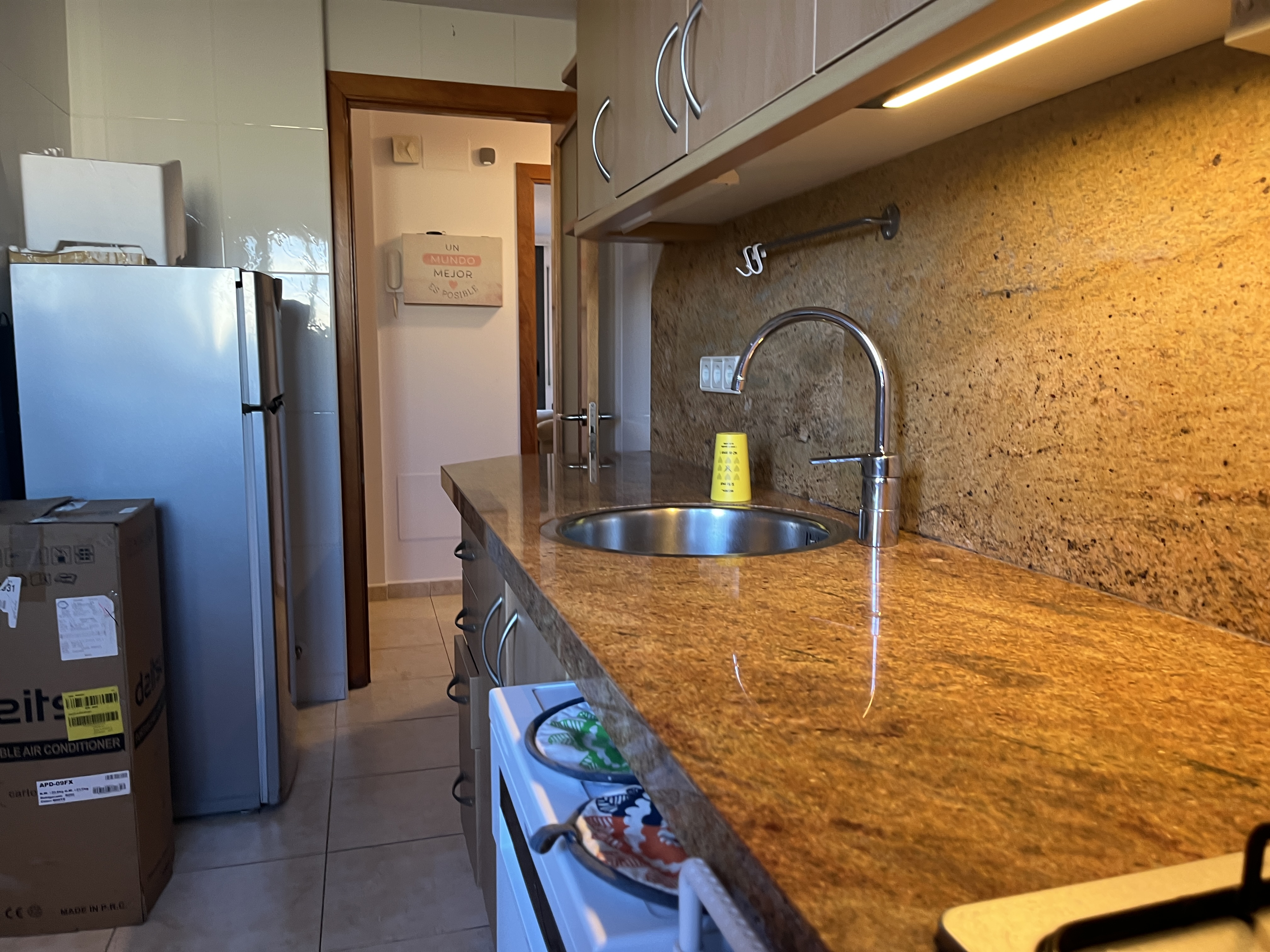 Pis moblat de 81m2 construït (útil 70m2), distribuït amb entrada, cuina independent amb rentador (zona de rentadora i caldera de gas natural), saló-menjador, 3 habitacions ( 1 doble tipus suite – bany amb plat de dutxa ) i bany principal amb banyera.
